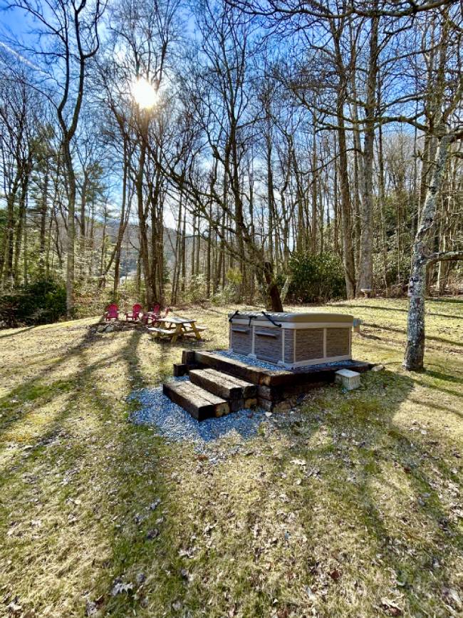 Guests are invited to enjoy all spaces and amenities across our four acres. Relax on our outdoor veranda with either a garden or seasonal mountain view. If you would like, use our gas grill or get adventurous and take advantage of the gas pizza oven. Positioned under the trees, we have a 36 jet hot tub that seats six. We have two fire pits and provide two cords of wood per day. We also have laundry facilities upon request. If you would like, we also have a steam sauna that seats approximately four available for a fee. Most incredible of all is our grounds: a peace-filled place for reflection, contemplation or meditation--by the creek, in the woods or on the lawn.